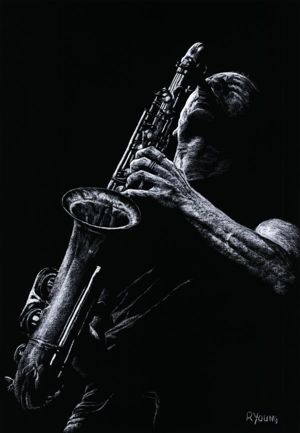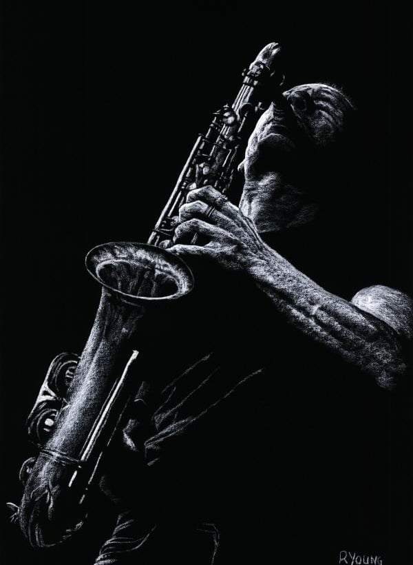 Triste embocadura de saxo, / Es el sonido de estas calles perplejas. / La suela de mis zapatos el suelo a cada paso golpea. / Mi cuerpo entumido va, / Pensando que ni siquiera importa si el camino es largo para gastarlo.