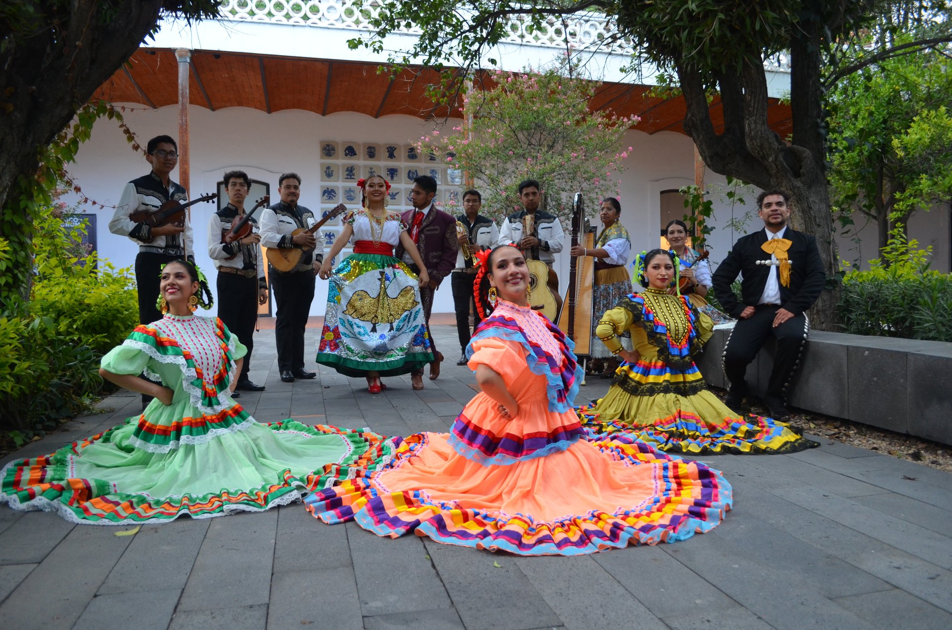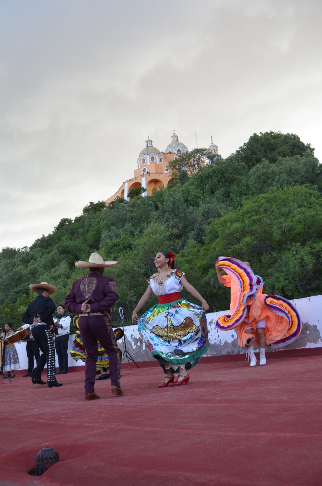 Con la icónica pirámide de Cholula como telón de fondo, los músicos hicieron resonar sus instrumentos para interpretar el Son de la Negra y el Jarabe Nacional. Estas melodías fueron acompañadas por la ejecución coreográfica de los bailarines, quienes lucieron con orgullo las vestiduras de la China Poblana y los trajes representativos del Estado de Jalisco.