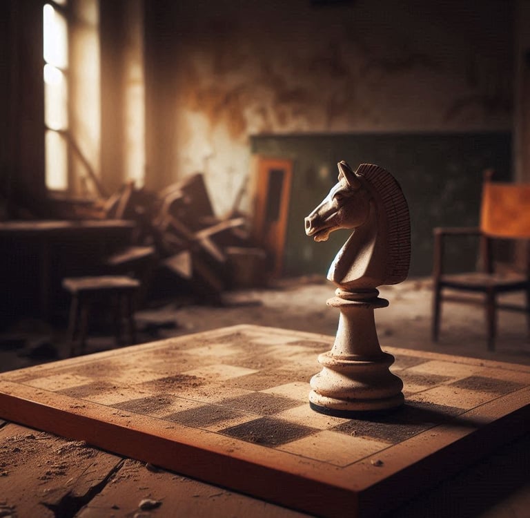 como trebejos apartados en un tablero de ajedrez,