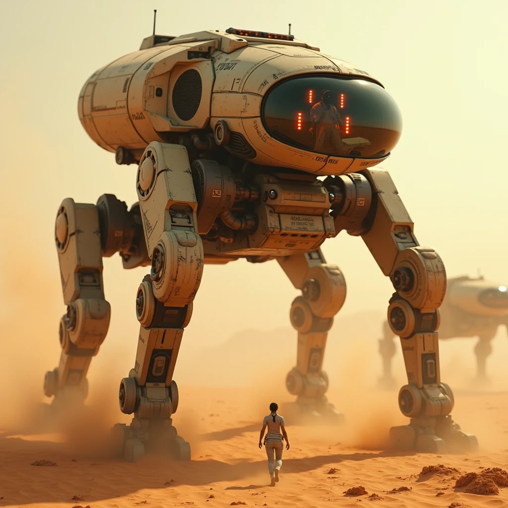 Las tres gigantescas máquinas ATSC-2D —de ATS: advanced technological systems—, tanques de guerra soportados con dos patas digitígradas. Parecidos a mechas como los de las series de ficción. Estaban equipados con dos ametralladoras y dos pesados cañones duales de repetición, arma de cada tipo a cada lado de la cabina; y lanzamisiles montado en el techo. Caminaban sobre las arenosas y cálidas dunas desérticas.