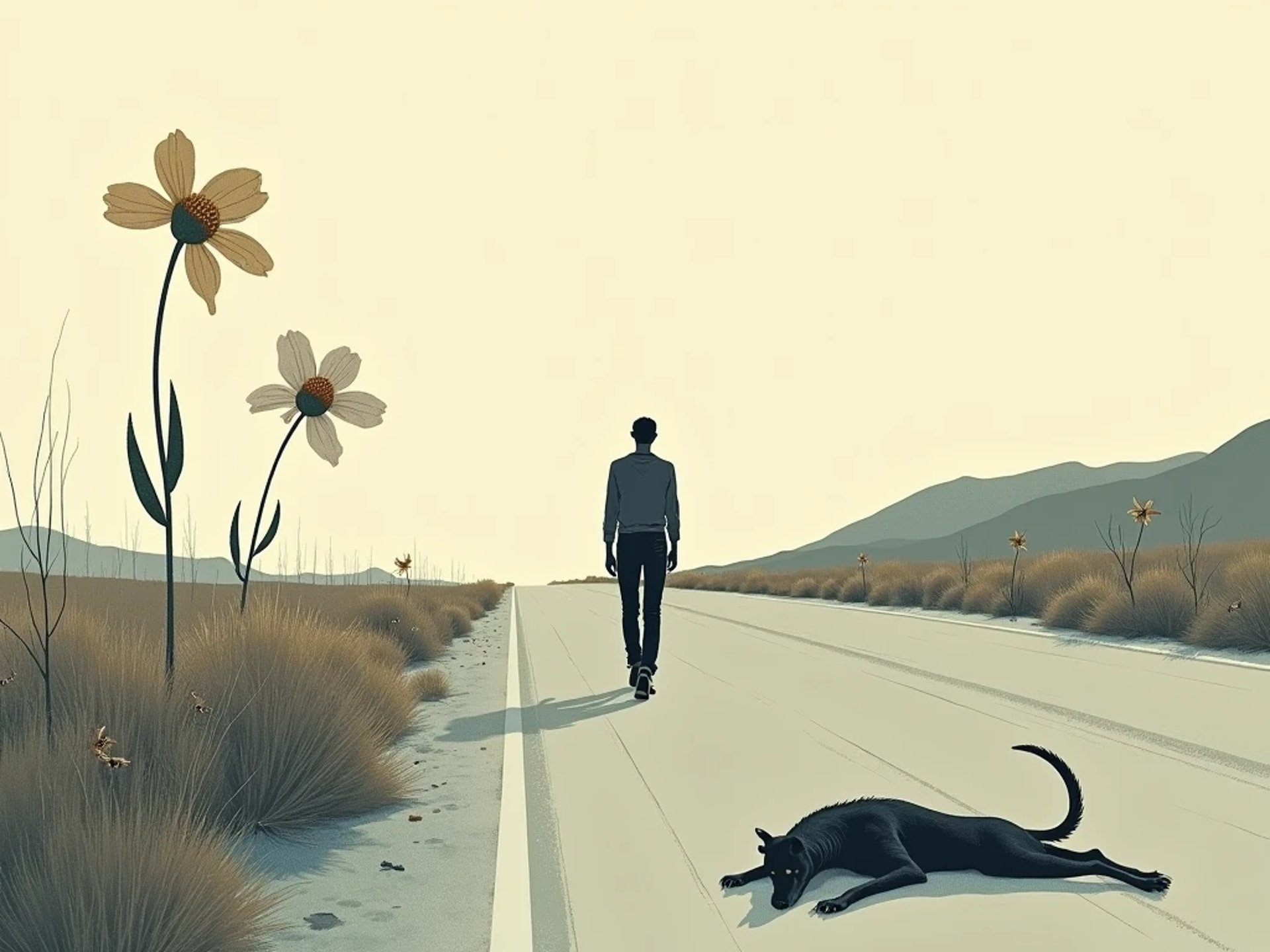 Ignorar la belleza vacía de flores de plástico / andar sobre traiciones oscuras puñaladas de veneno / afrontar las verdades tenebrosas / nutrirse de verdades benignas / observar con estoicismo un perro muerto al lado del camino