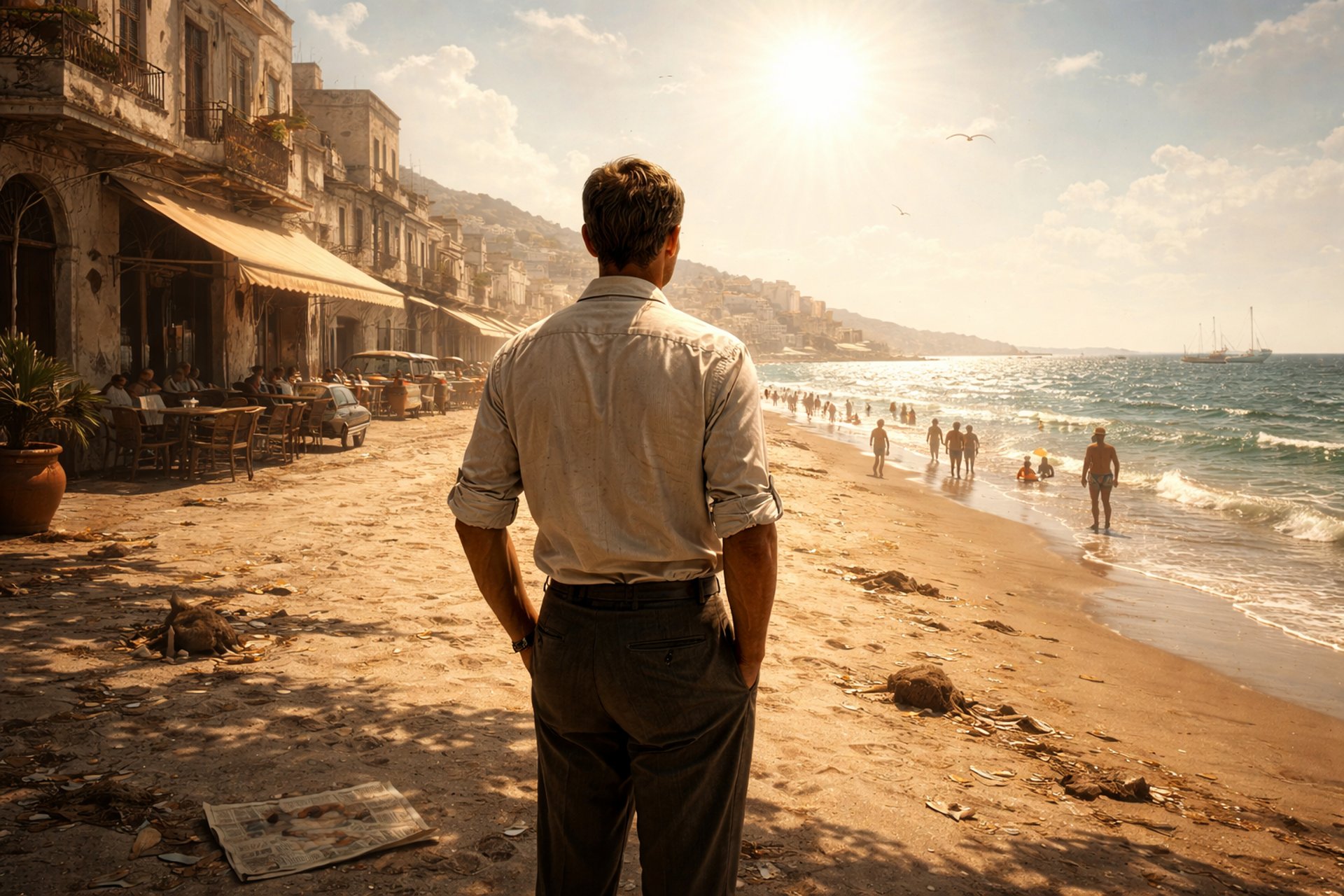 Entro en Argel con una luz que no concede tregua. El sol no ilumina: pesa. Se posa sobre los hombros, sobre la arena, sobre los párpados, como si quisiera borrar cualquier sombra donde esconder una emoción. Camino junto a un hombre que no parece buscar nada. No huye, no persigue, no se interroga demasiado. Vive. Respira. Come. Duerme. Y, sin embargo, en esa aparente neutralidad, algo se fractura.