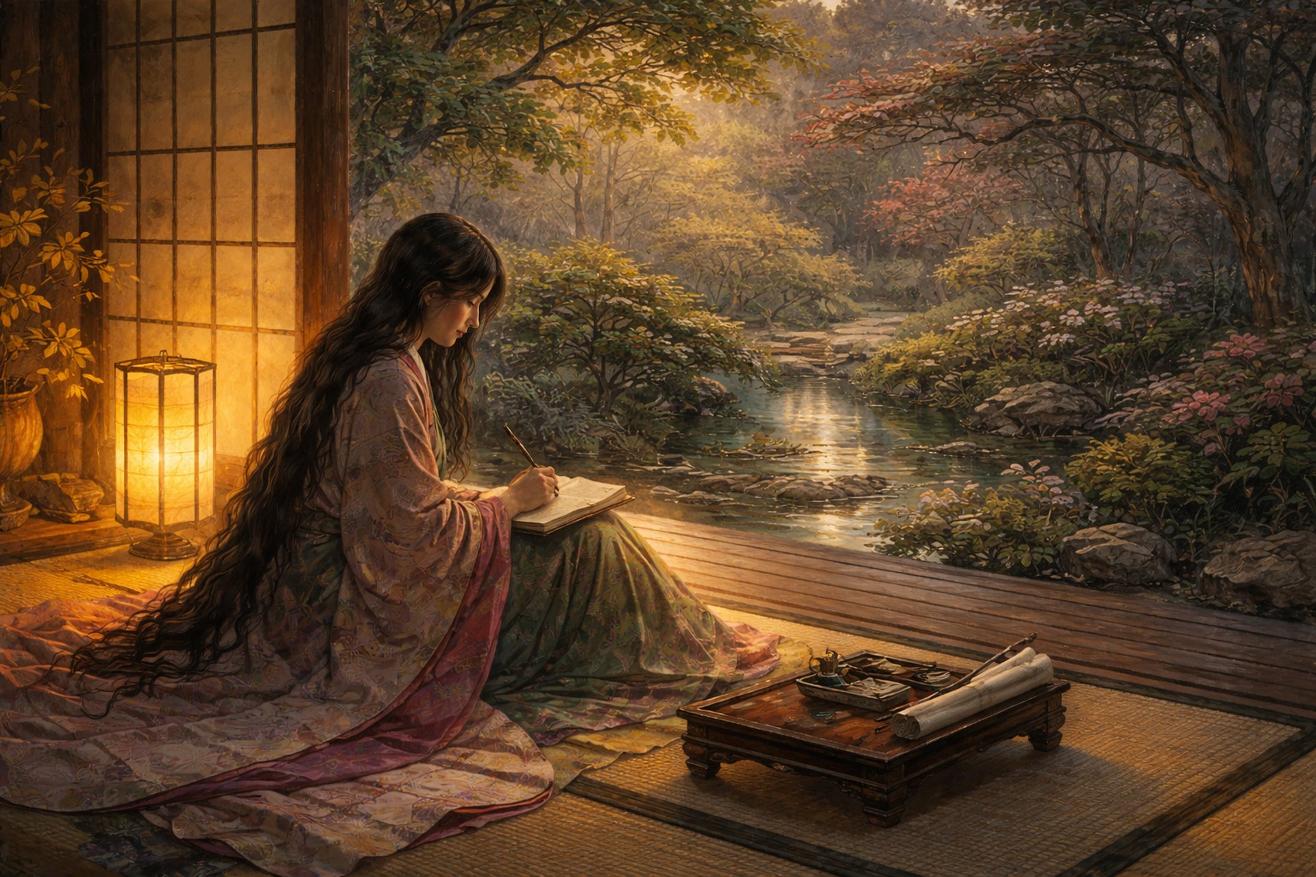 El libro de la almohada fue escrito por Sei Shōnagon alrededor del siglo X, durante el período Heian, una etapa de gran refinamiento cultural en Japón. La autora fue dama de compañía en la corte imperial, un entorno donde la poesía, la estética y la observación minuciosa del comportamiento social eran formas esenciales de expresión y prestigio.