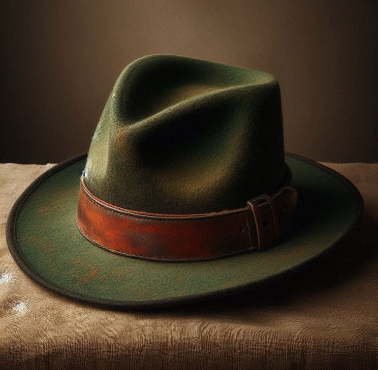 Él, el sombrero, es un tipo verde, fino pero viejo, como esos ancianos europeos de mucha clase, añejos e inocentes, cargando ese pasado tormentoso de la guerra.