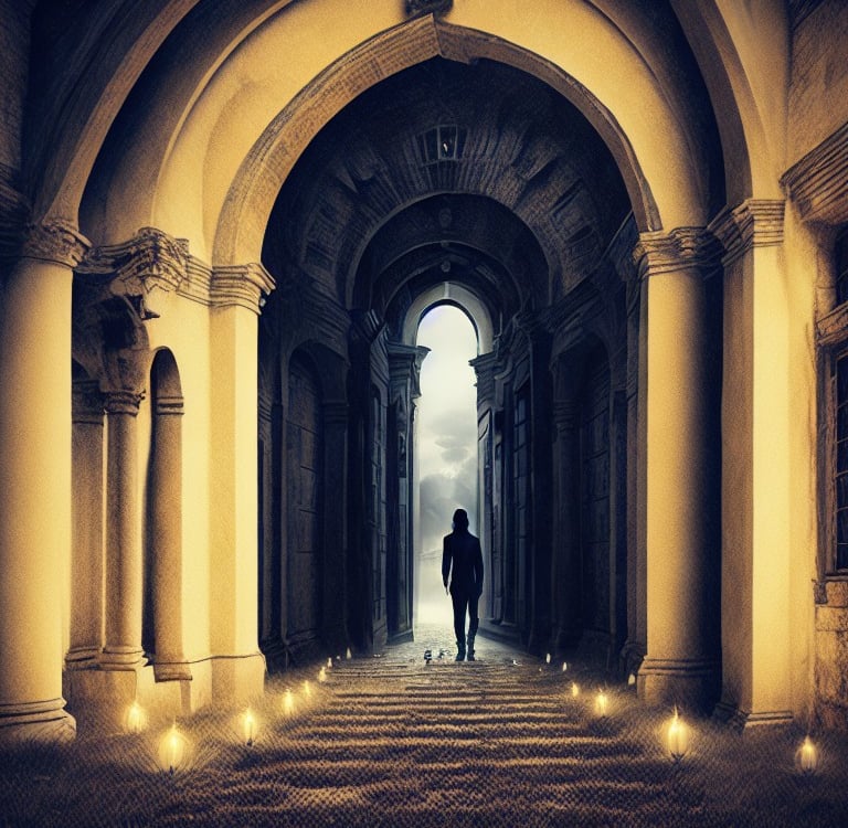se adentran en un laberinto ruinoso,
