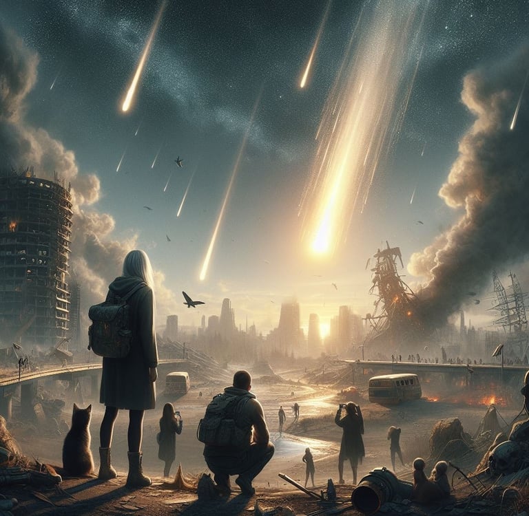 Ellos, las agencias espaciales y los científicos sabían de esto hacía meses, pero no estaban seguros de nada sobre las trayectorias de los tres pequeños imbéciles pedazos de roca espacial. A pesar de todos los cálculos, las errantes maniobras de las piedras gigantes hacían imposible saber si en el último momento se pasarían de largo saludando a los terrícolas que los verían en las pantallas de sus televisiones muertos de miedo, abrazándose entre padres e hijos, o abandonados al licor en la barra de algún bar maloliente, o como finalmente sucedió, impactarían con un tremendo combo de golpes al gordo y enfermo planeta tierra, aniquilando a la humanidad.