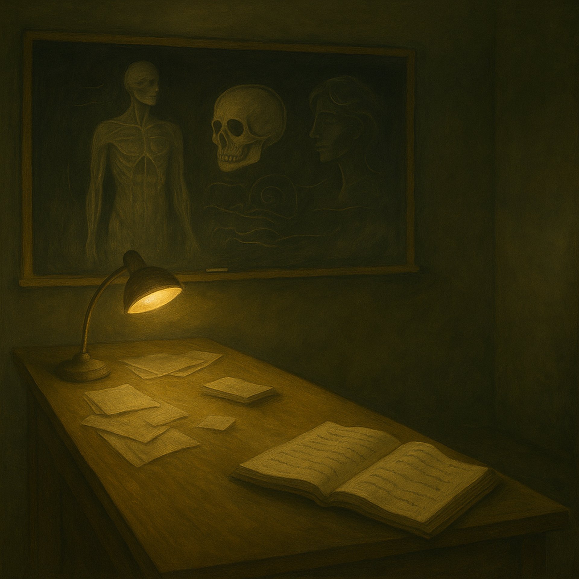 Para percatarse de que le estaban prestando atención, la profesora giró la cabeza hacia los alumnos y descubrió a cuatro de ellos durmiendo: a dos los hizo pasar al frente para que le señalaran las partes de la vulva e hicieran lo que Julián había indicado; y a las otras dos les dijo que avivaran el pene del modelo, porque ya se estaba escondiendo en su estuche. Después sorprendió a Milton concentrado en su escritura. Él le dijo que sólo estaba tomando apuntes.