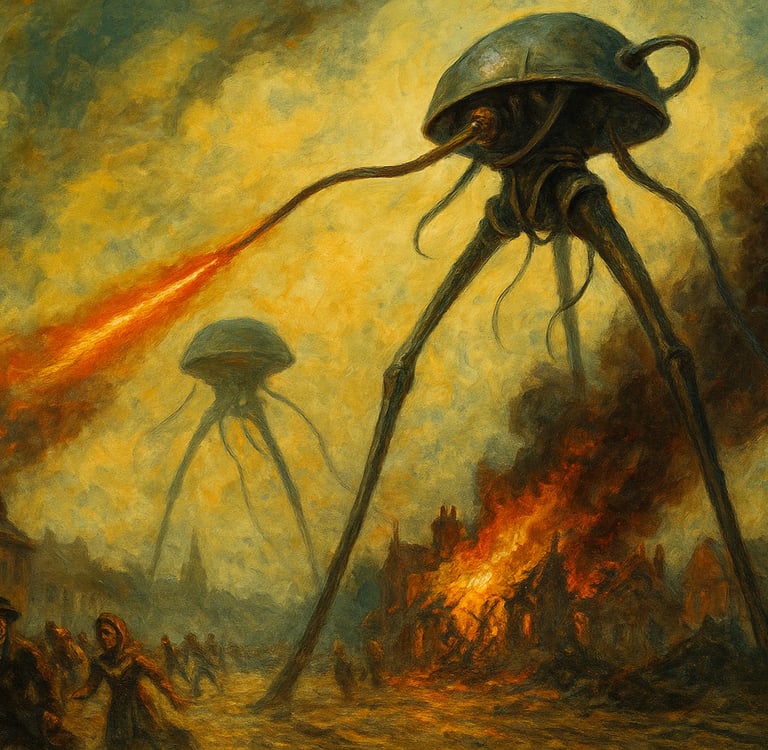 Este ensayo nace del deseo de releer La guerra de los mundos no solo como un clásico de la ciencia ficción, sino como una obra cargada de resonancias simbólicas y filosóficas que siguen vibrando más de un siglo después de su publicación. Más allá de su trama de invasión y supervivencia, la novela de Wells es un escenario donde se ponen en juego las grandes preguntas: ¿qué significa ser humano? ¿Cómo enfrentamos lo absolutamente otro? ¿Qué sucede cuando nuestras certezas colapsan?