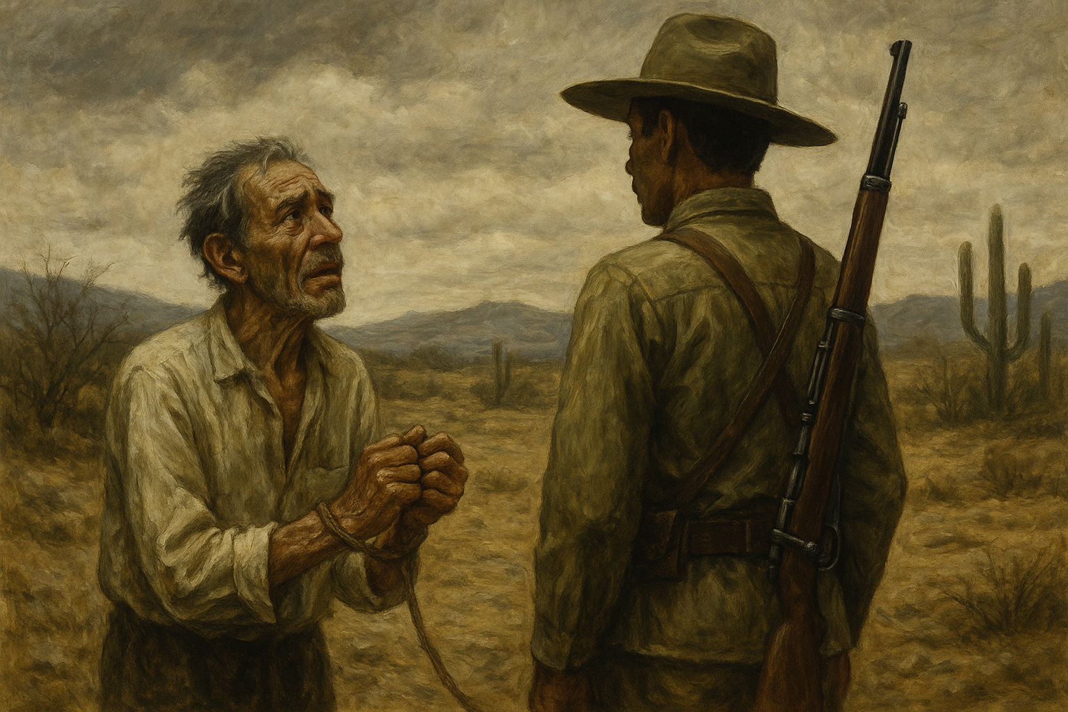 Hay un momento clave en el cuento, cuando los soldados vienen por Juvencio. No se resiste. No grita. No corre. En cierto modo, parece que se entrega. Quizás porque, después de tantos años de esperar la muerte, al fin ha dejado de tener fuerzas para seguir huyendo. O quizá porque hay un punto en el que el miedo se agota, y solo queda el cansancio.