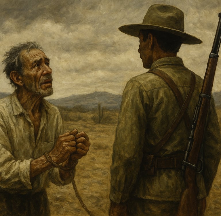 Pero Rulfo va más allá. No se limita a mostrar la violencia del acto, sino que la extiende como una mancha que alcanza a todos. Justino, el hijo, no ha matado a nadie. No ha disparado, no ha amenazado, no ha peleado por tierras. Sin embargo, también está atrapado. Hereda la historia de su padre. Carga con el peso de ese pasado. Es él quien debe ir a suplicar, quien se ve obligado a negociar con los soldados, quien arrastra una vergüenza que no es suya. Eso es lo más triste de la violencia: que no se queda solo con quienes la ejercen, sino que se transmite, como una enfermedad.