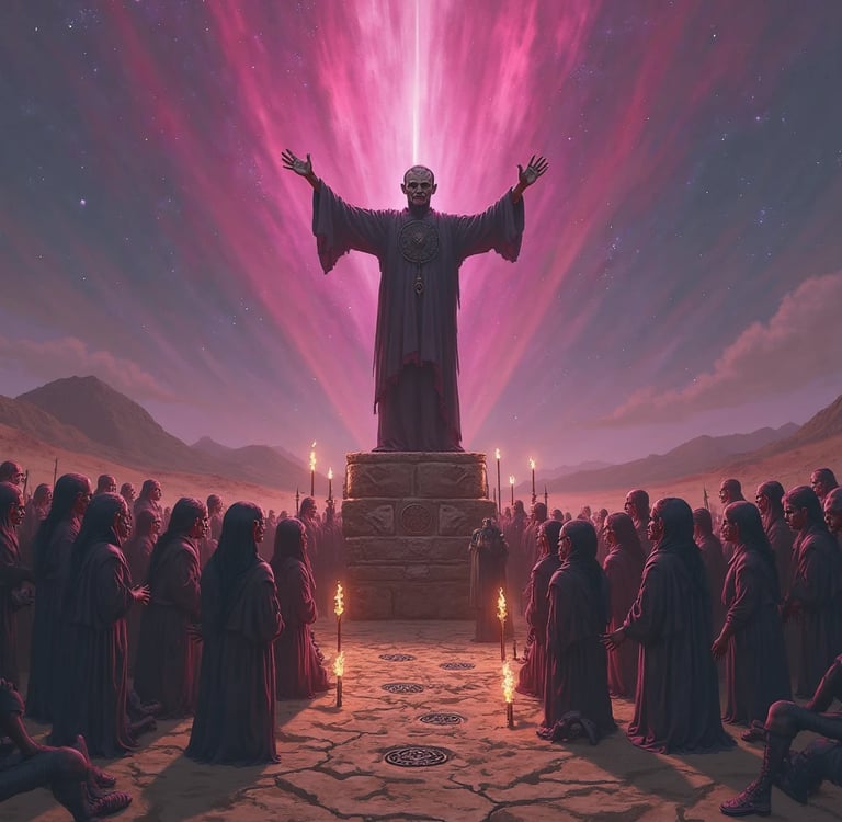 Entre grandes vociferaciones, apuntando con sus huesudos dedos hacia las estrellas, el líder dijo con sorna, enseñando aquellos dientes amarillentos revelados por una sonrisa socarrona que había que rendir homenaje con la sangre de los pecadores que no estuvieron dispuestos a seguir las enseñanzas de los dioses iluminados que estaban más allá de los astros.