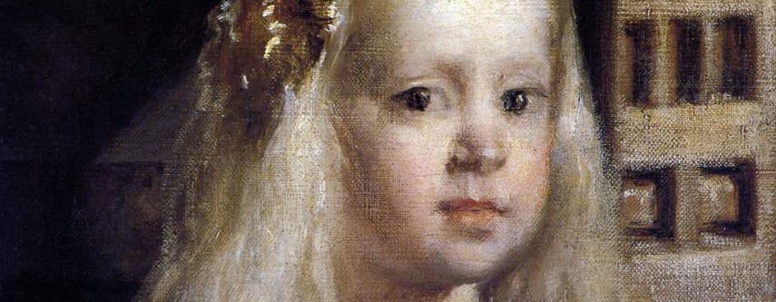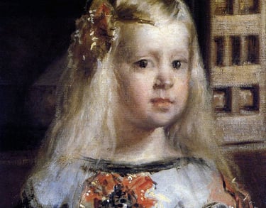 La infanta, por su parte, aparece casi suspendida entre la inocencia y la representación. No actúa: posa. Su quietud contrasta con la vitalidad contenida de quienes la rodean. En ese contraste se filtra una lectura inquietante: el centro del poder es inmóvil, mientras que la vida circula en los márgenes. La infancia de Margarita no simboliza únicamente el futuro de la dinastía, sino también la fragilidad de una figura que existe más como imagen que como sujeto. Velázquez la pinta con delicadeza, pero también con una distancia que evita la idealización absoluta.