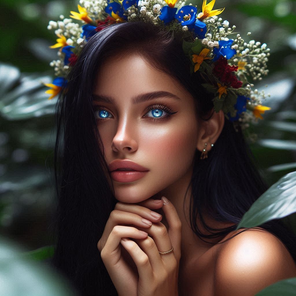 Así pasaron los años, la niña creció y se hizo mujer. Un día, aunque era mediodía, los custodios se durmieron. Tan notable hecho, no fue desaprovechado por la joven de piel blanca, cabello largo tan oscuro como las plumas de los cuervos y ojos de cielo, que nunca había estado fuera de la choza, sin su padre. Anonadada por las plantas, los animales que se movían a su alrededor, la joven caminó hasta llegar al río, lugar donde, por primera vez, vio su reflejo. El gran Dios Anaconda, morador de las adyacencias y señor del rio, también la vio, enamorándose de ella a primera vista. Cuentan que su codicia fue tal, que se la comió, apresándola para sí.