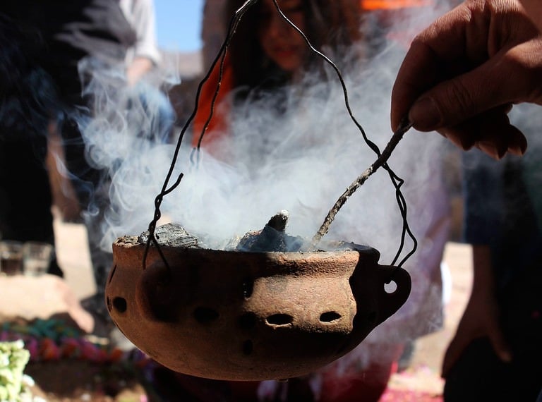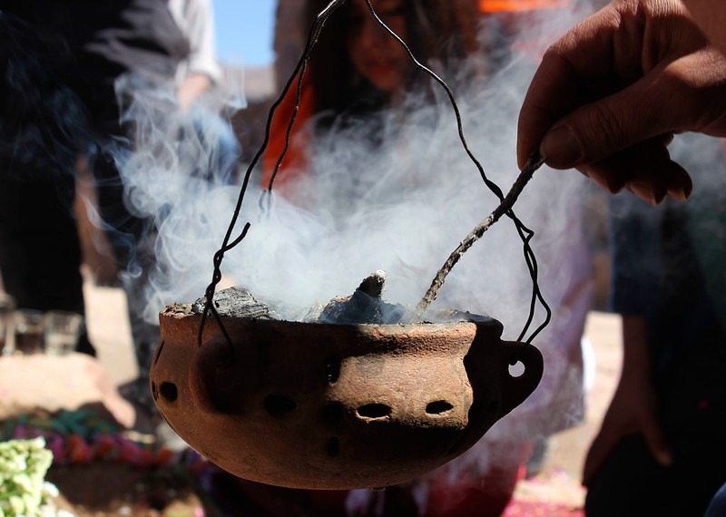El fuego es otro elemento sagrado que representa la energía vital, la transformación y la comunicación con el mundo espiritual. En las ceremonias, el fuego actúa como mediador entre los humanos y los dioses, portando las ofrendas y plegarias hacia lo invisible. Es símbolo de calor, luz y fuerza, pero también de renacimiento y purificación.