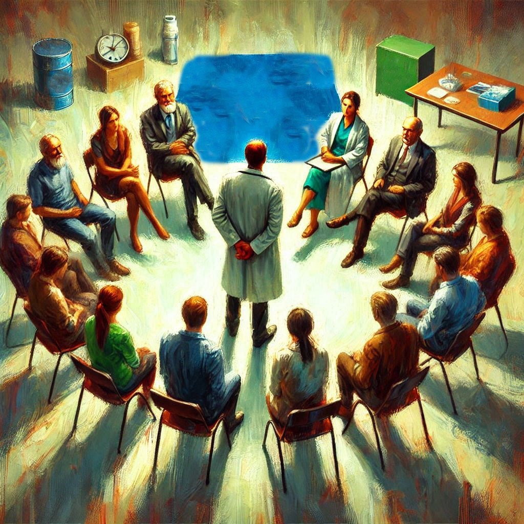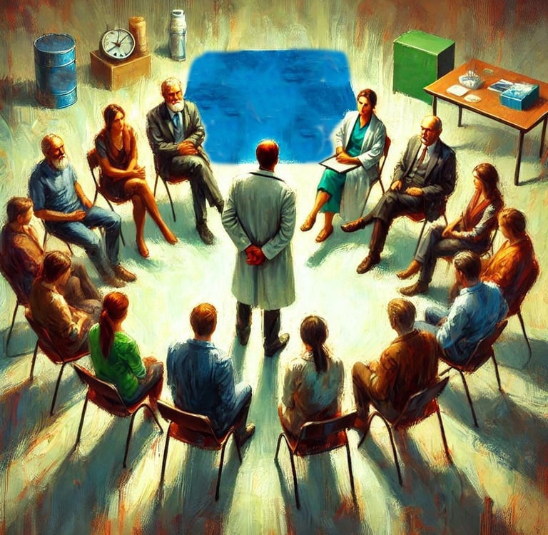 Nos sentamos en forma de semicírculo, donde el doctor se puso en medio para vernos a todos. Una vez que estuvimos listos, el propio doctor me presenta al resto de los enfermos, me pide que diga mi nombre y el motivo por el que estoy allí. Lo primero lo puedo entender pero lo segundo se me hace una estupidez, para qué hablar de mis motivos, si ya lo saben, son los mismos que el de estos locos.
