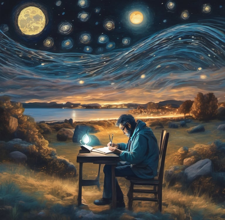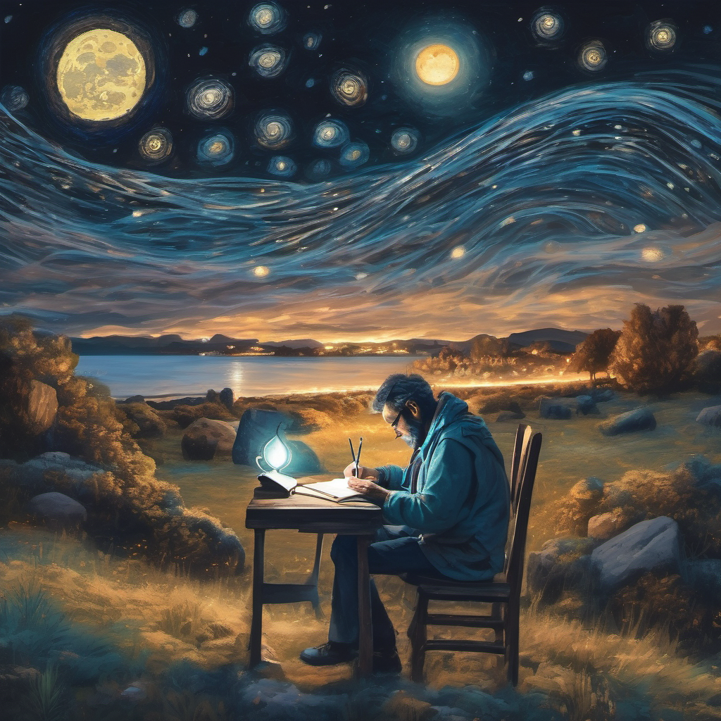 La noche me pide un poema / es indulgente con este bardo, / herido por el silencio. / Pone mi pluma a danzar, / ritmo mío, palabras mías.