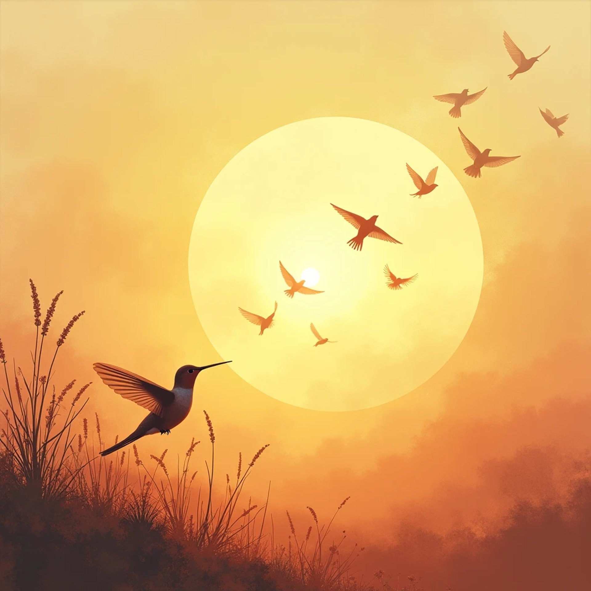 Amaneceres inmóviles, / como pintados, / van despertando los trinos. / El pájaro a veces es un poema; [...]